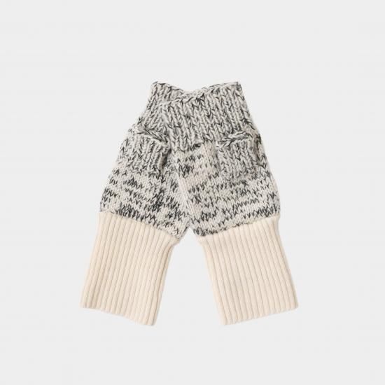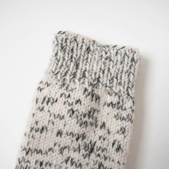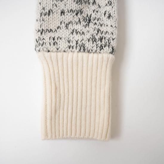 手首はカシミヤ100%の糸で手横機を使い編み上げ、