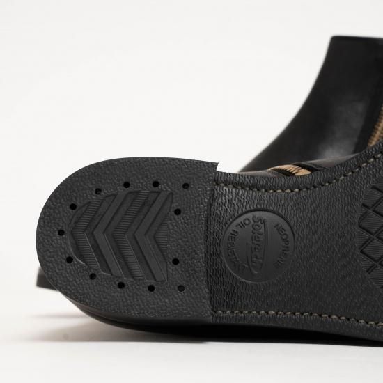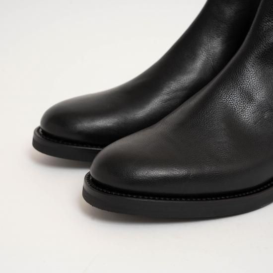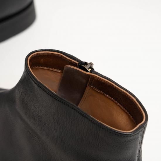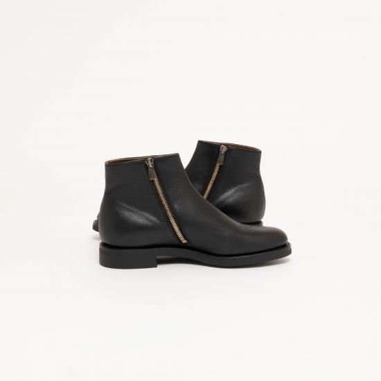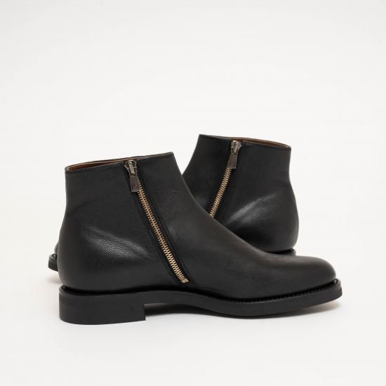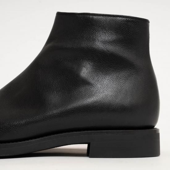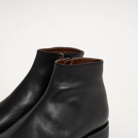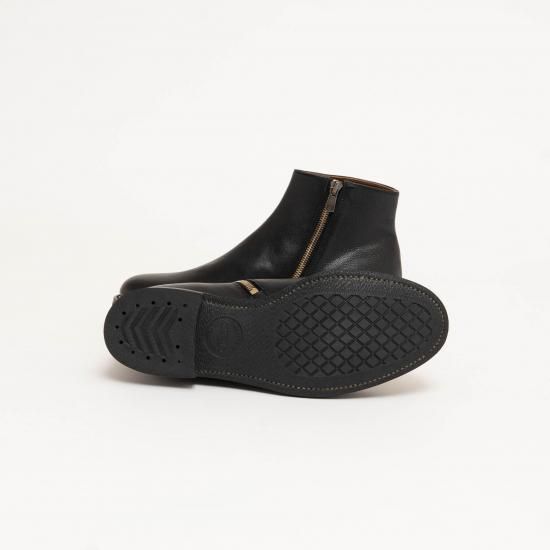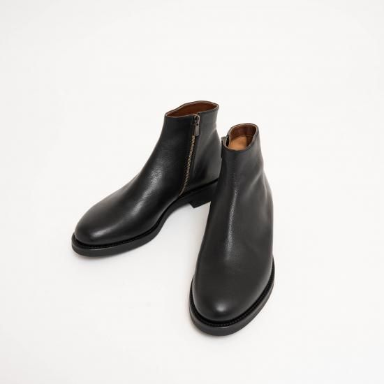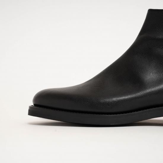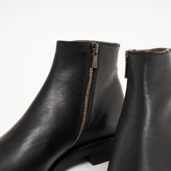 その為、素材の質感やシワ感をより感じられるよう、通常のサイドジップの外側に入る〈接ぎ〉は無くして極力ミニマルな作りとしました。
