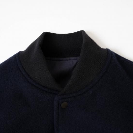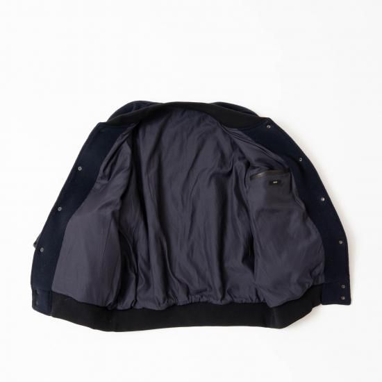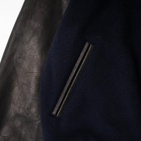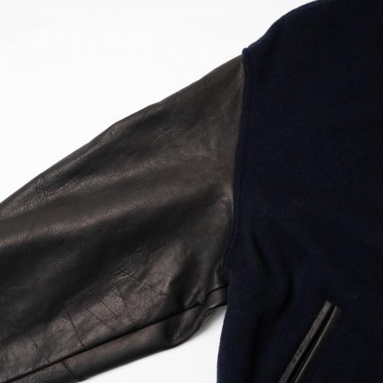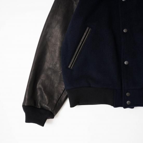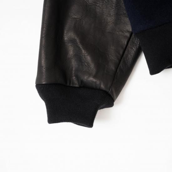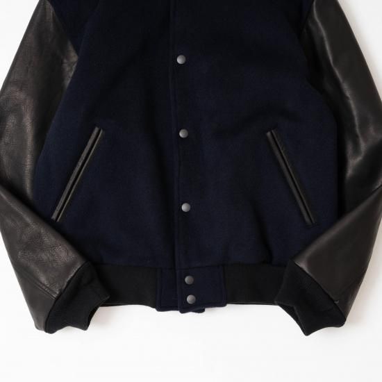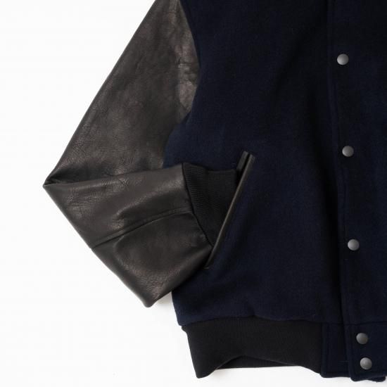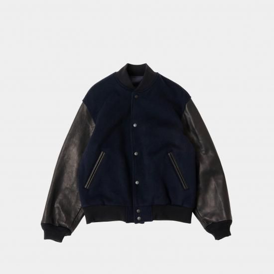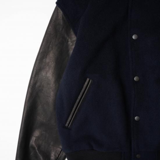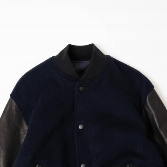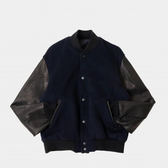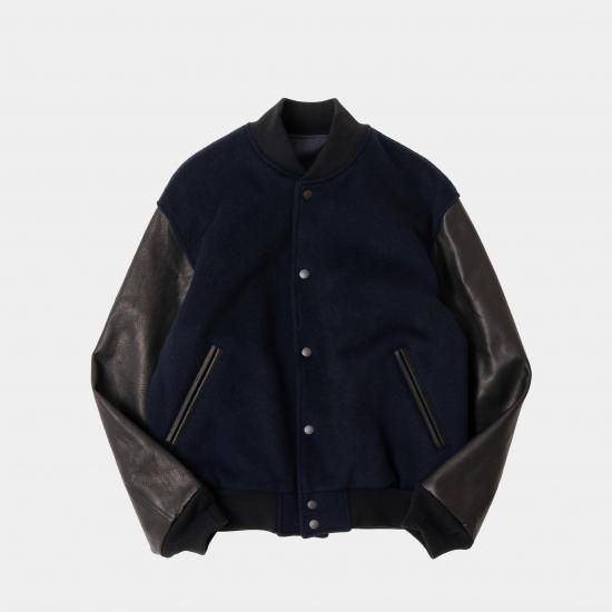 メルトン素材とレザーを組み合わせたVarsity Jacketです。