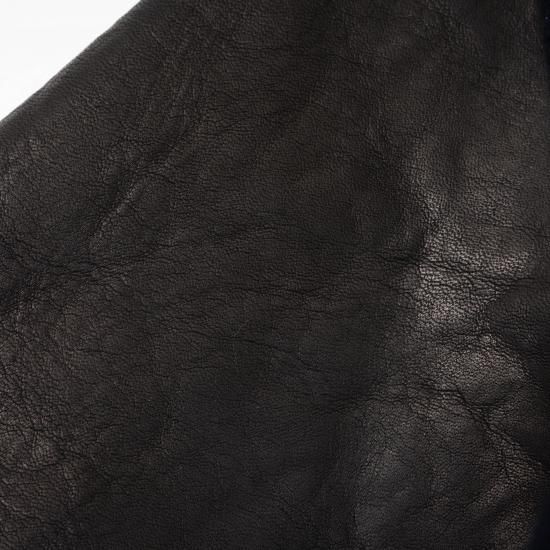 袖部分は、適度にハリコシを残した国産(副産物)のカウレザーを組み合わせることで、スポーティー且つカジュアルなアイテムですが、艶めかしさも持ち合わせるよう意識しています。