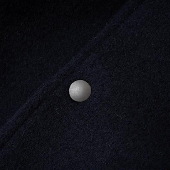 ボディには、極細ウール繊維である16.5マイクロンのSuper140’sを高密度に織り上げた上品なダブルクロスのメルトンを使用。愛知県一宮市で製織しています。一般的には生地に使用しない加工(起毛)方法を行うことで、二重織ながらもふんわりと柔らかく、軽やかな仕上がりです。
