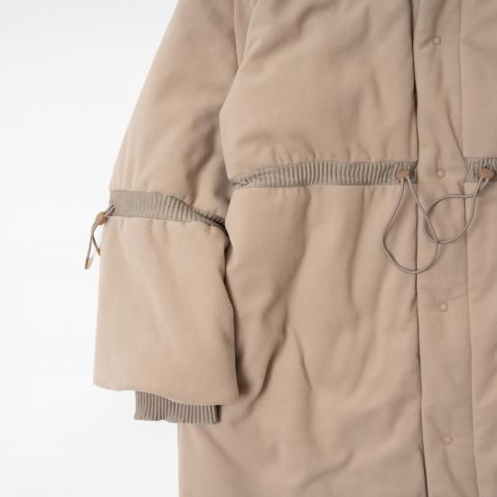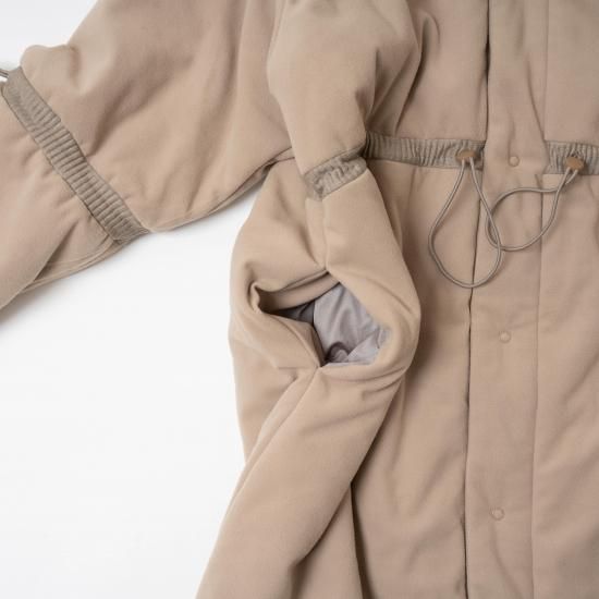 厚手の起毛生地にプリーツを施したフリースプリーツはスウェットのようなリラックス感のあるトップス・ボトムスから軽量の中綿アウターまで、ウィメンズ・メンズ共に広いレンジのアイテムをデザインしています。